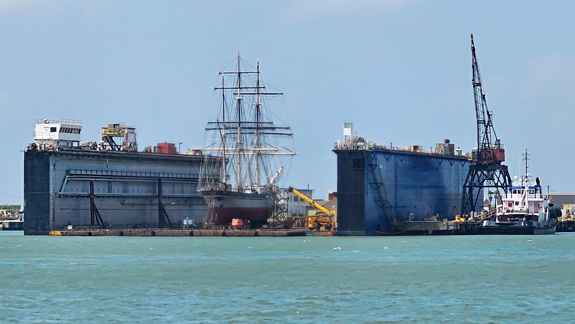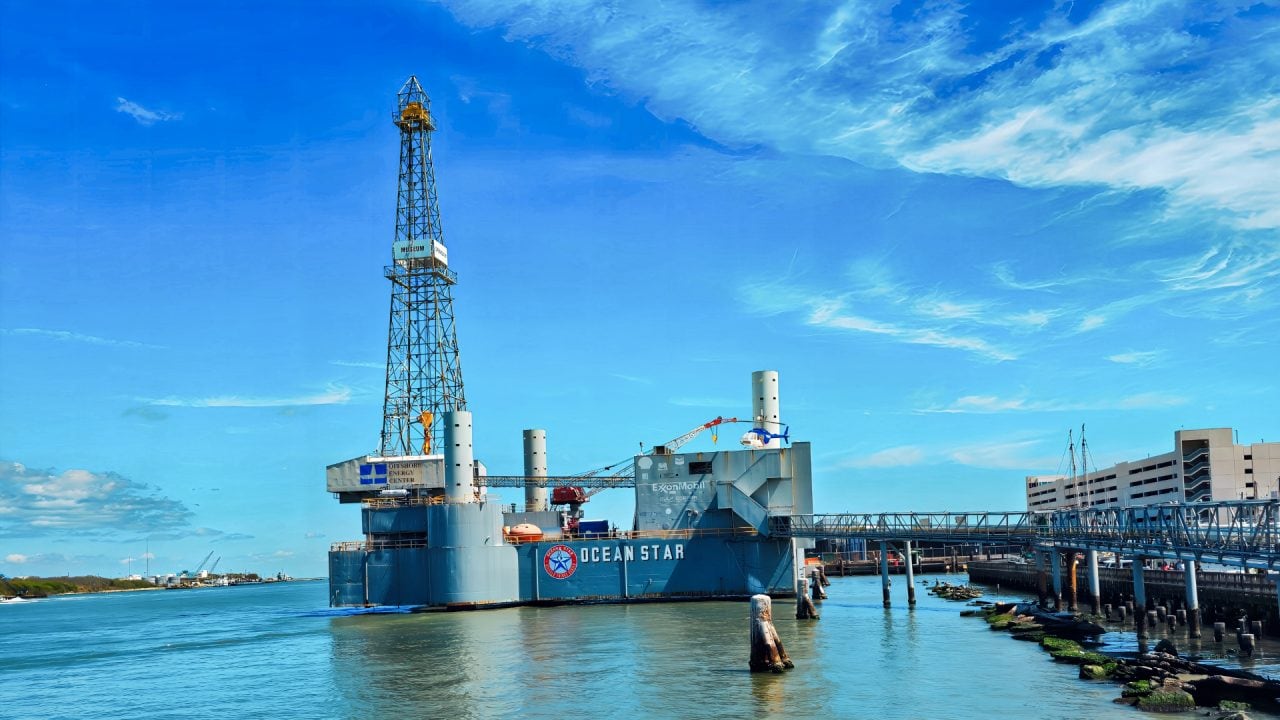 Our “GPS My City” self-guided walking tour of Galveston took us to the docks, where we saw that the three-masted schooner that was normally docked there had been moved to a dry dock on the north side of the Galveston Channel. The photo at the top of this blog shows about how close we got to it…..not very close. The tour also took us to the Ocean Star Offshore Drilling Rig. The Ocean Star drilled 200 oil wells in the Gulf of Mexico. It is now retired and operates three days a week as a museum.