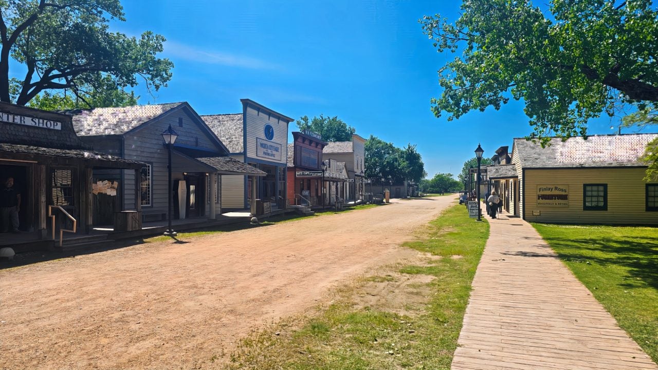The Old Cowtown Museum is located near the original Chisholm Trail, a network of routes that brought Texas longhorn cattle north to Kansas, where they could be loaded onto trains and shipped east. This is what helped turn Wichita into a booming “cow town” in the 1870s, basically the Wild West version of a logistics hub.